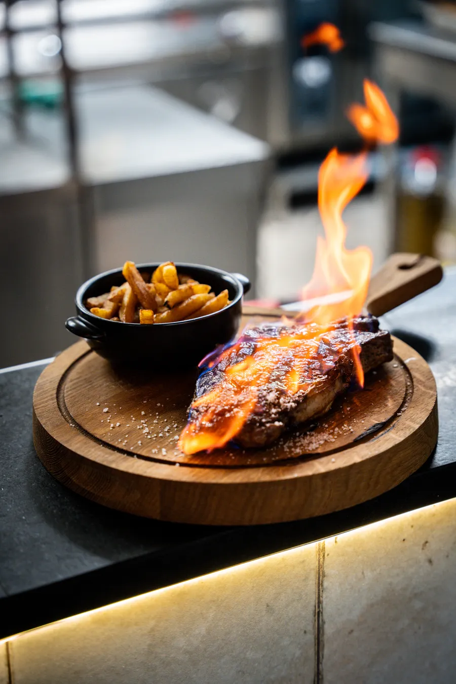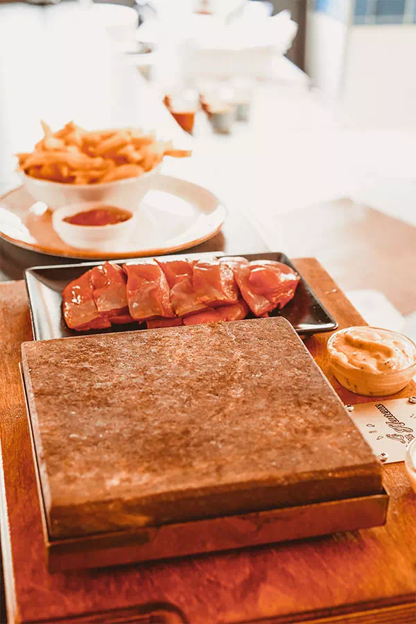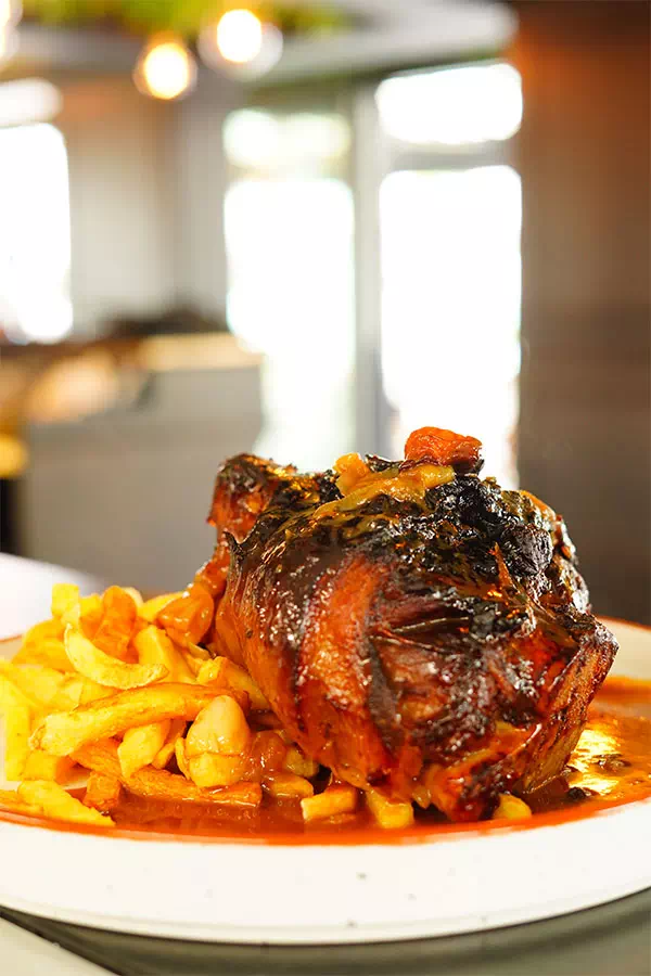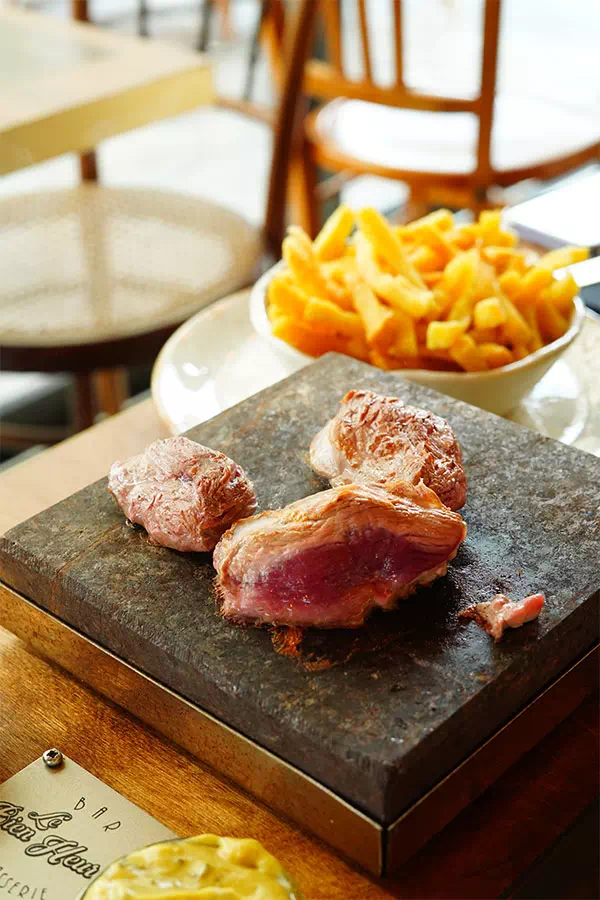 Niveau viandes, on adore savourer le jarret rôti à la bière en trois cuissons ou encore le filet de bœuf avec sa cuisson sur pierre et la véritable andouillette artisanale de pays.