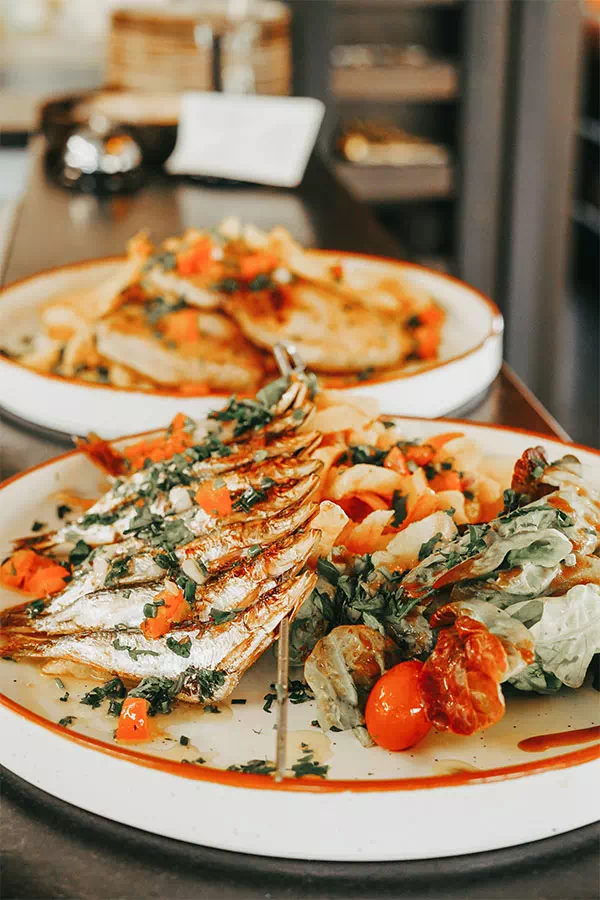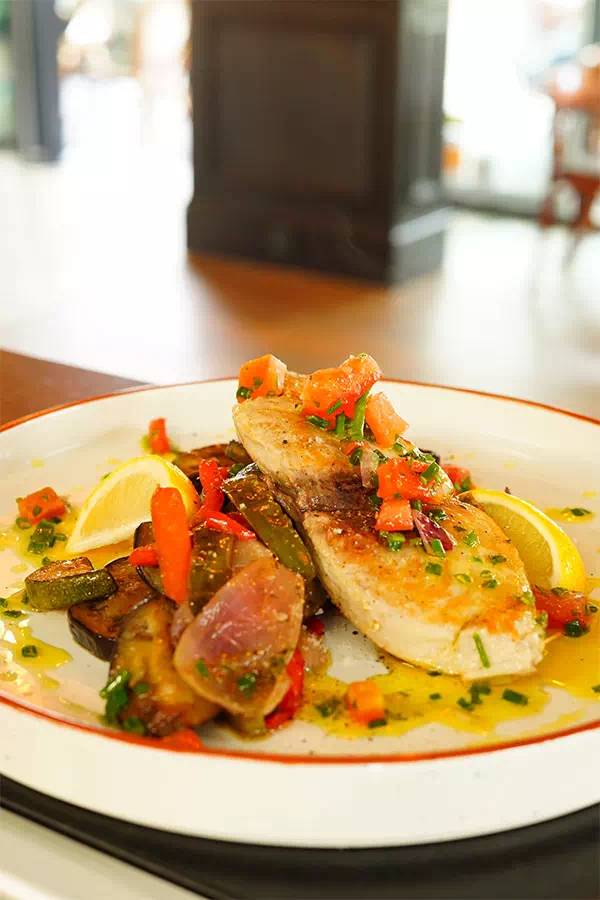 Côté mer, nous vous proposons le poisson du marché qui varie selon l’arrivée de la criée. On craque aussi pour les sardines grillées de Saint-Gilles-Croix-de-Vie. Notez que nos frites sont réalisées maison, comme tout ici, à partir de pommes de terre du Nord, résolument les meilleures pour cet exercice ! Et en dessert, qui ne succombe pas à notre fameuse brioche perdue et sa chantilly pralinée ?